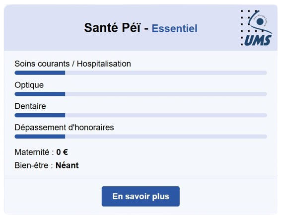 Santé Péï - Essentiel constitue notre garantie d’entrée de gamme. Conçue pour vous offrir l’essentiel, elle couvre vos besoins clés en matière de soins et de remboursements.