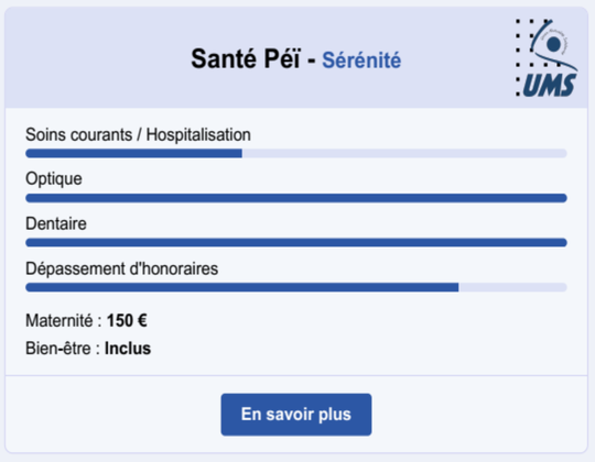 Santé Péï - Sérénité offre un bon niveau de remboursement , adapté aux besoins des assurés souhaitant une protection fiable sans nécessairement aller jusqu’au sommet de la gamme.